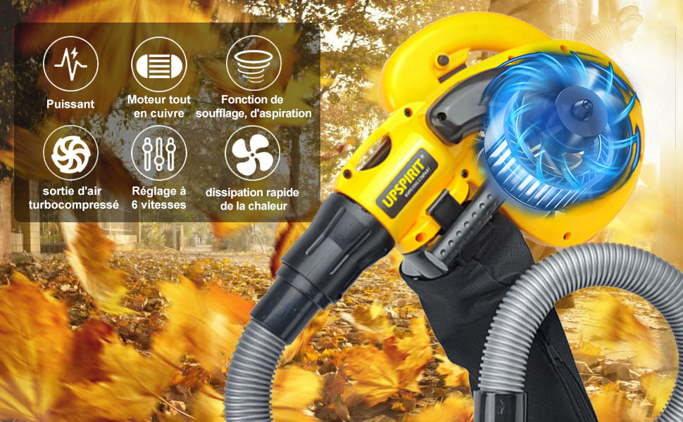 L'aspirateur et souffleur de feuilles électrique est doté d'un moteur robuste qui vous permet de manipuler sans effort les feuilles mortes, les débris et la saleté dans votre jardin, votre garage et votre allée.